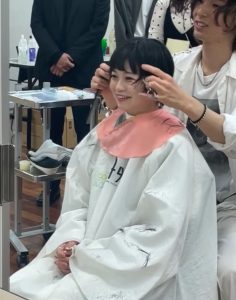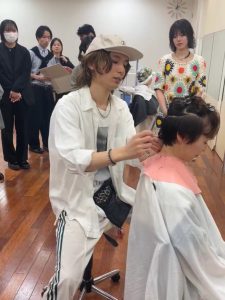 藤木先生は、KHA・JHCAのヘアフォトコンテスト、デザイナーズ賞、三都杯デザイナーズコンテスト決勝大会グランプリ、ジャーナル賞など、数あるヘアコンテストにおきまして、入賞されておられ、我々メンバーに間近からデザイン技術を見せてくださいました。