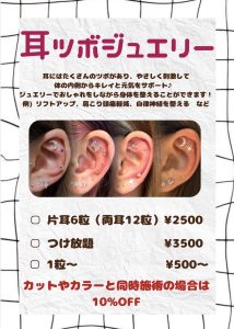 今回は新メニュー、耳ツボ・ジュエリーをご案内させて頂きます。