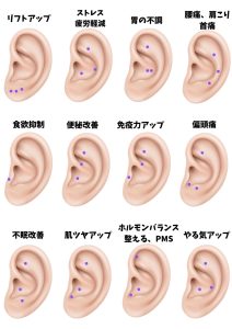 頭皮や足裏と同様に、耳にもたくさんのツボがあり、優しく刺激して身体の内側からキレイと元気をサポートいたします。