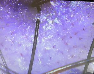 ご覧の様に、赤く炎症をおこしていた頭皮が、青く健康的な頭皮に変わりました。